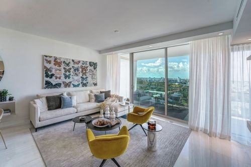 With impeccable water views, this 3BED + 4.5 BATH residence offers incredible space at 4,337 square feet. With stunning terraces on either side of the flow-through unit, the primary bedroom is separated from the rest of the bedrooms for optimal privacy. A seemingly floating home in the sky, the residence has uncompromised views of the Atlantic Ocean and of the Bay.